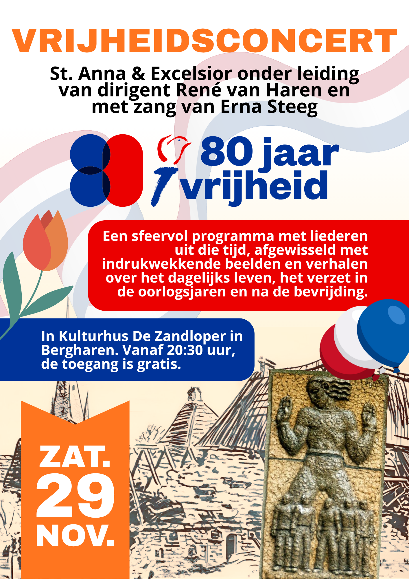 Onder de bezielende leiding van hun dirigent René van Haren zullen St. Anna & Excelsior, samen met zangeres Erna Steeg, een sfeervol programma brengen met liederen uit die tijd, afgewisseld met indrukwekkende beelden en verhalen over het dagelijks leven en het verzet in de oorlogsjaren en na de bevrijding, waarvoor ook de familie Luske is uitgenodigd.
